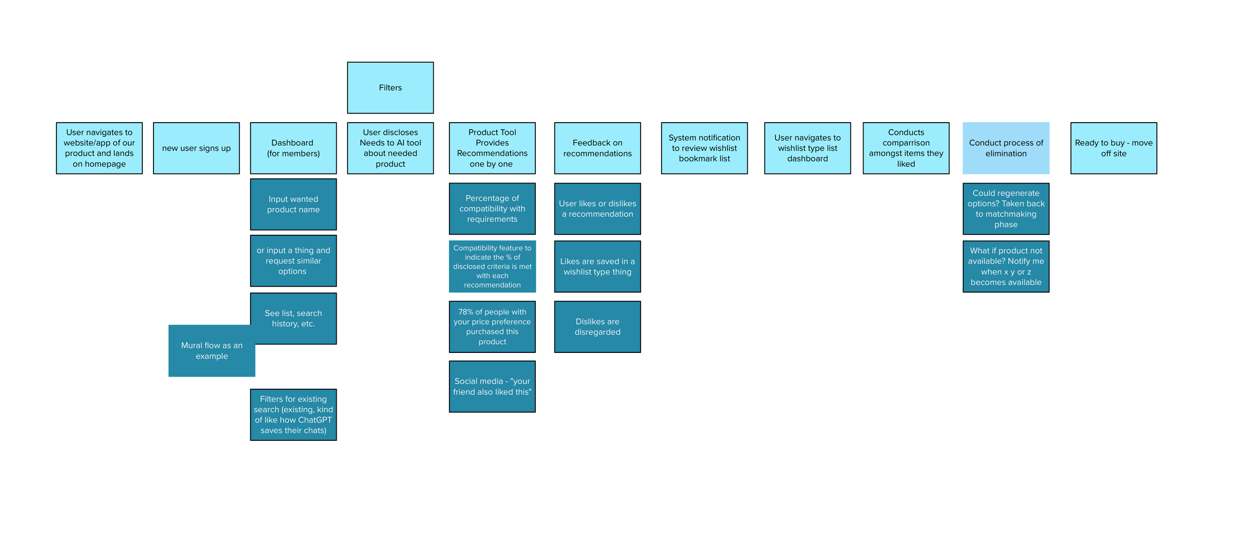 We developed wireframes in Miro, and found a fundamental agreement on what parts of the journey would be like.